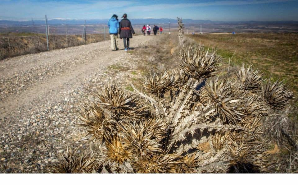 Al llegar al punto más alto del recorrido se hacía visible, a pesar de la neblina o la bruma de la fría mañana, los picos nevados de la cordillera de Gredos en su lado occidental. También veíamos, como si estuviera allí cerca, el pueblo de Villamiel de Toledo, y más lejos, entre bruma y desfigurado en azul, un cerro solitario en el que yo creí ver la Peña de Cadalso.